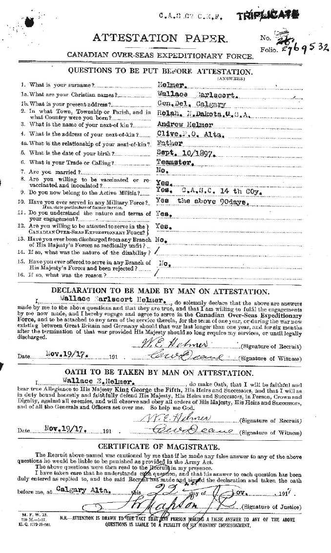 Attestation Papers - Wallace Helmer