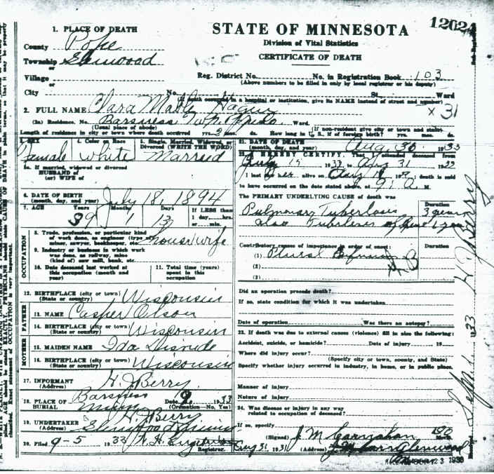 Death record - Clara Hagen