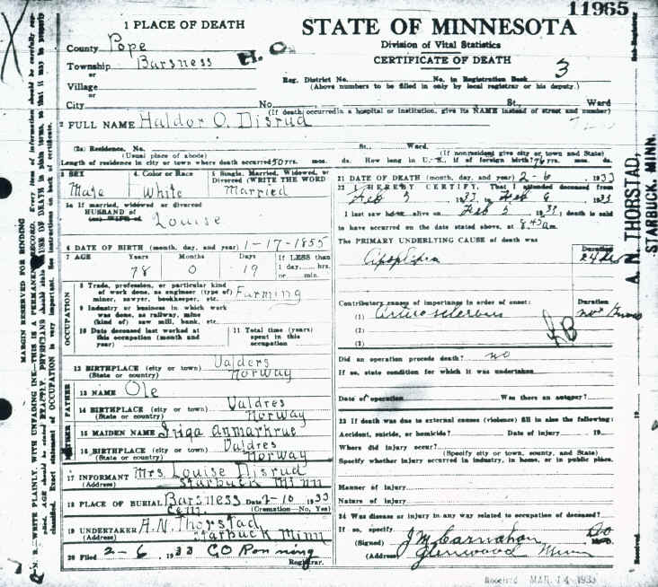 Death Record - Haldor Disrud