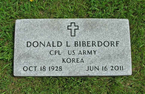 2) Donald served in the U.S. Army. He entered the service at Fargo, ND on 30 Oct 1951 and served in Germany. He was discharged at Fort Sheridan, IL on 14 Oct 1953, as a corporal. 3) Wife of Donald Lavern Biberdorf: Nola Ann Anderson - living; daughter of Oscar Kolstad and Verna Anderson. 4) I have an obituary and funeral card for Donald. |