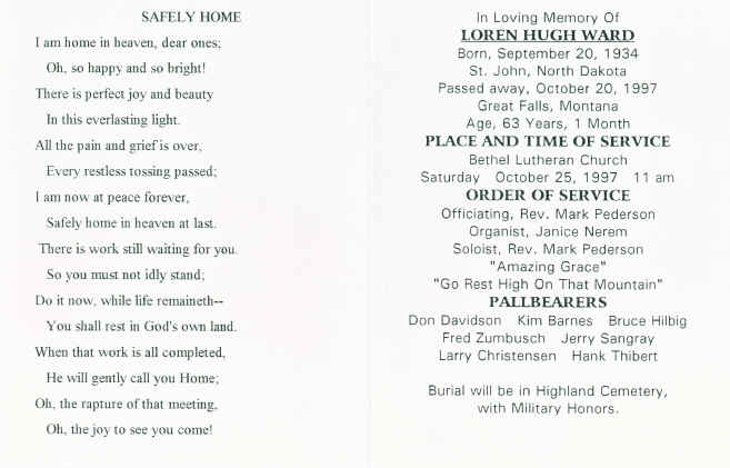 Funeral card - Loren Ward