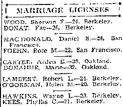 Article in Berkeley Daily Gazette, July 3, 1933, page 11: