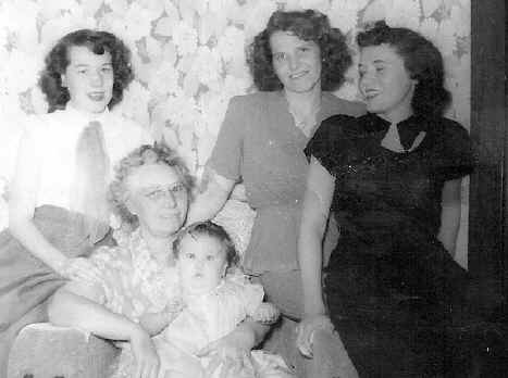 Corrine, Clara (holding Connie Kay), Millicent and Eloise Nov 1952