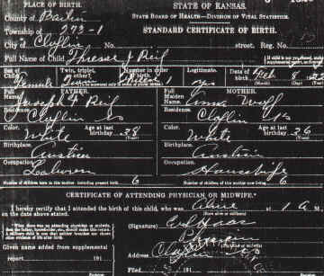 Theresa Reif's Birth Certificate