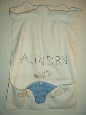 James and Emma's laundry bag. This is hung in a bathroom in our home.
