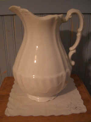 James and Emma's wash pitcher. This is displayed on an antique stand in a bedroom of our home.